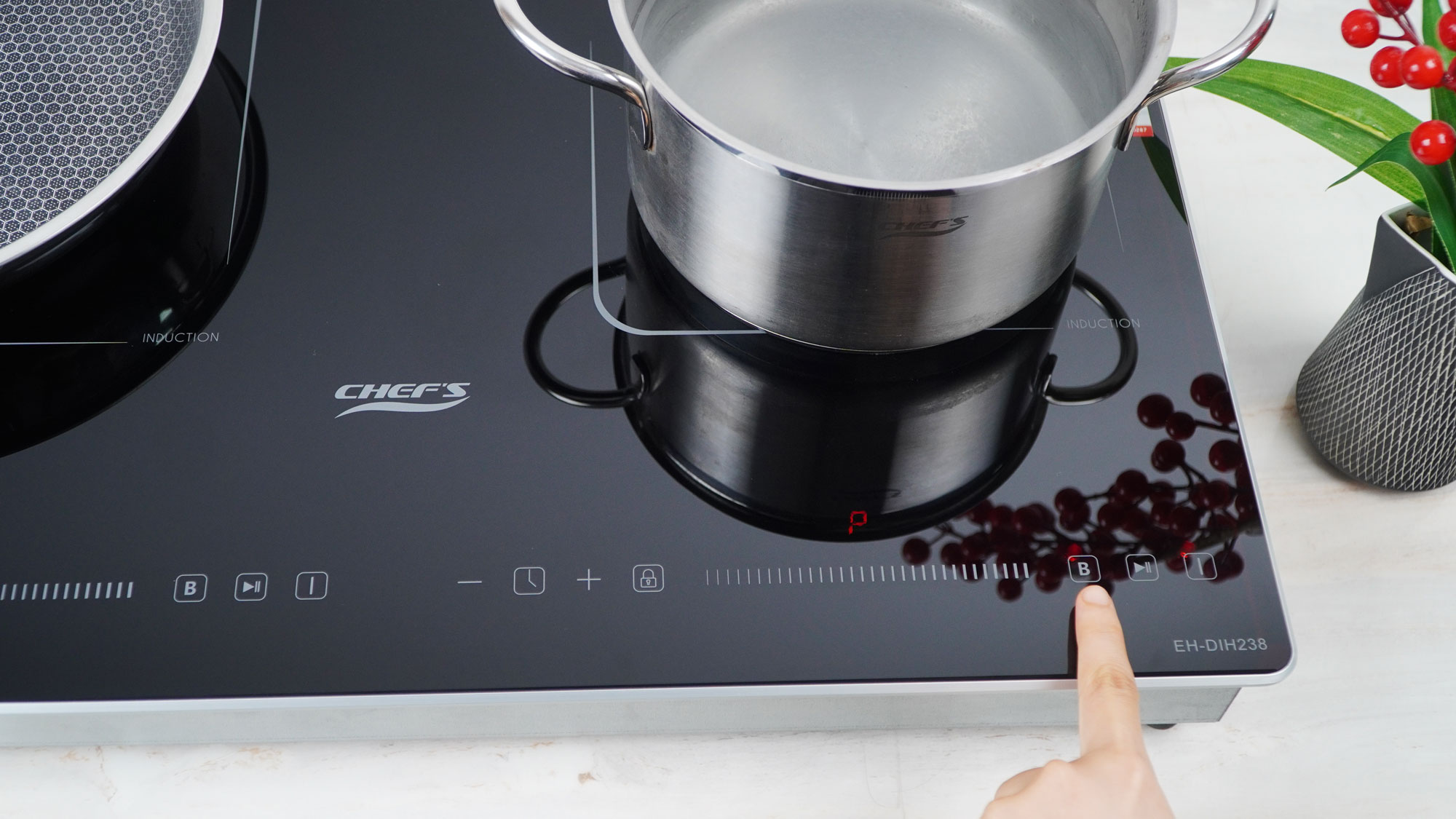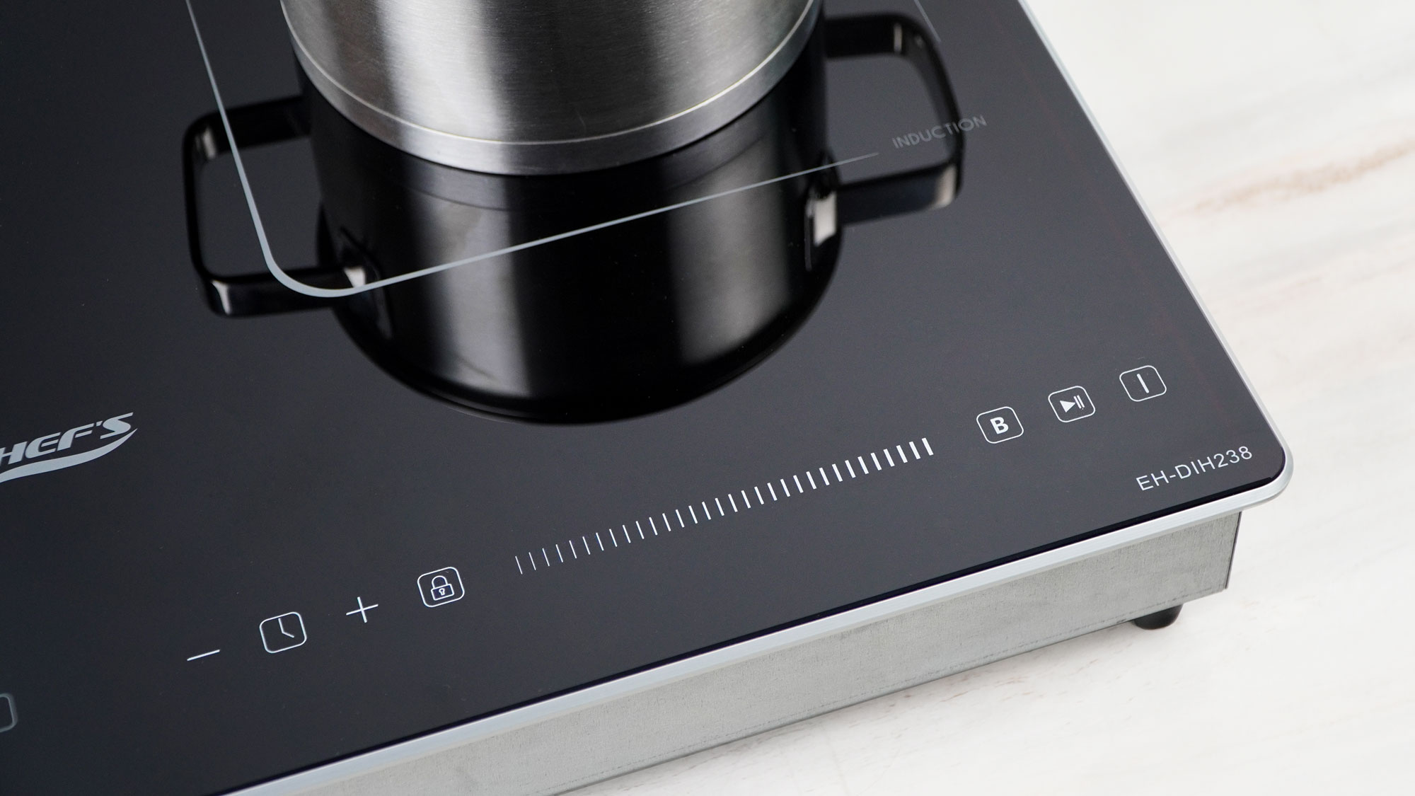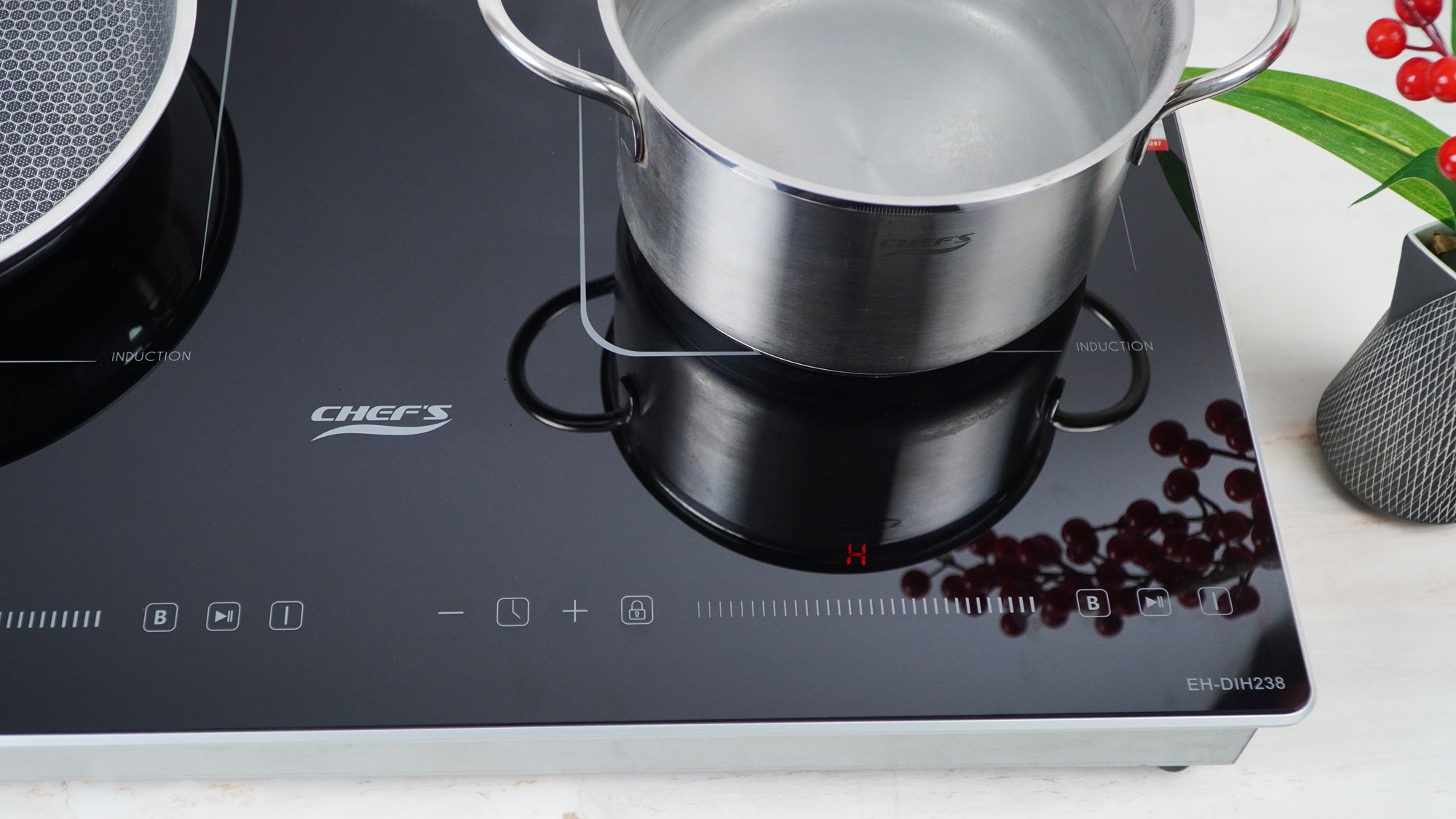 Tháng 5/2025, Chef's cho ra đời model bếp từ 2 vùng nấu EH-DIH238 với thiết kế sang trọng, tinh tế chuẩn Châu Âu. Bếp sử dụng mặt kính Crystal Black siêu bền. Bề mặt kính phẳng, sáng mịn làm nổi bật không gian bếp. Ưu điểm nổi bật của model bếp từ Eh-DIH238 này chính là thiết kế nhỏ gọn, với kích thước chỉ 600x380mm, phù hợp để lắp dương, đây chính là lựa chọn tối ưu cho những gia đình có không gian bếp nhỏ hoặc không muốn cắt đá.