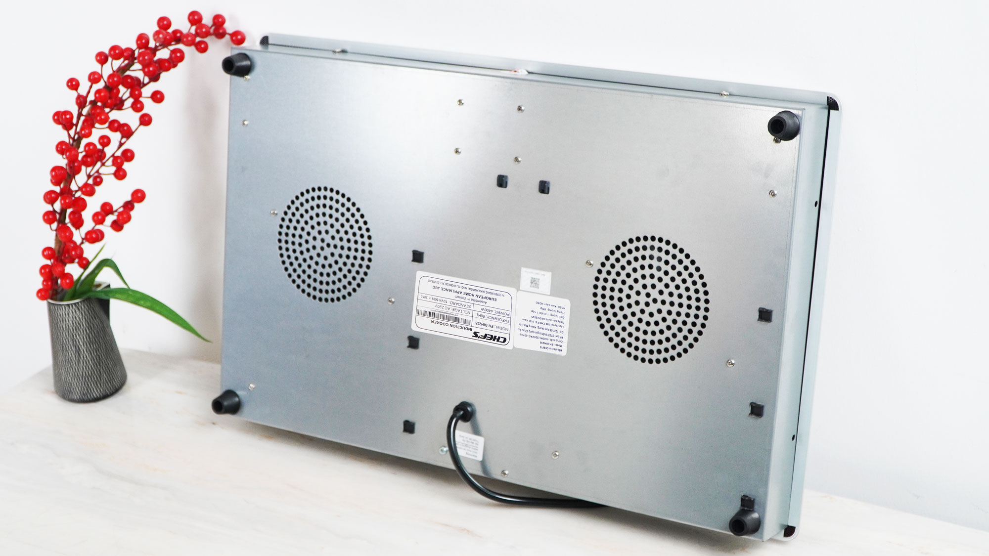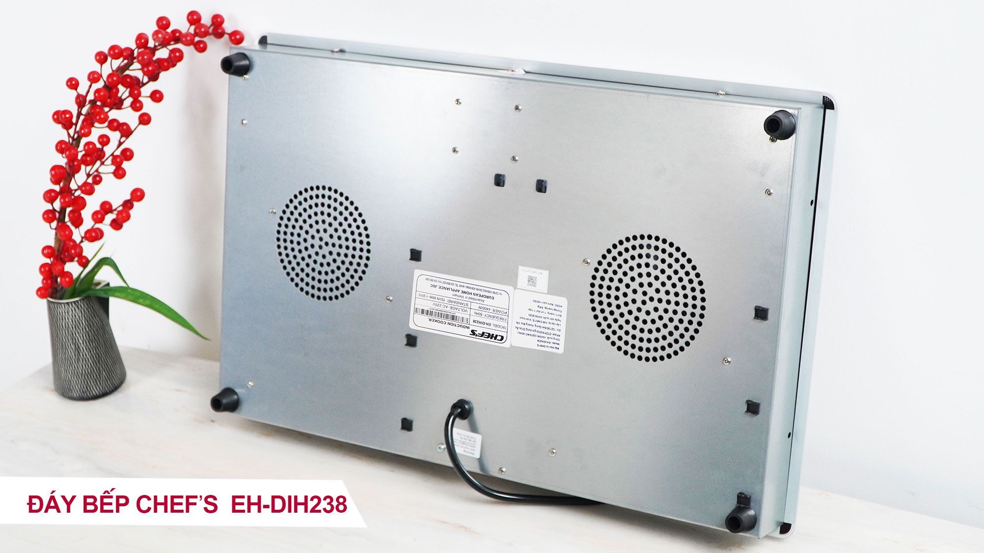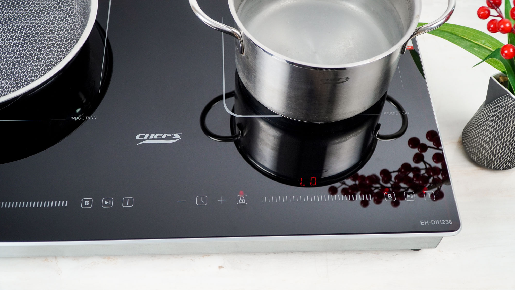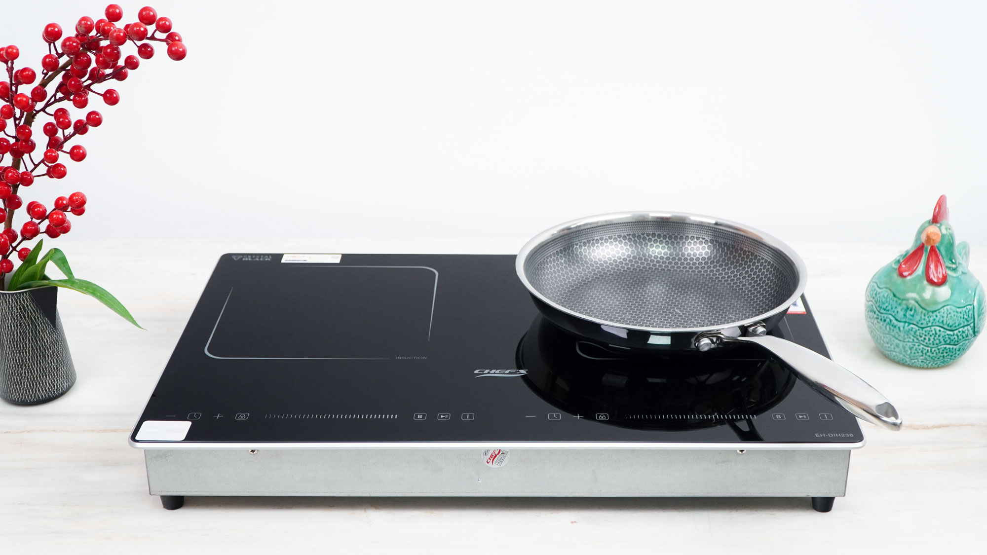 Tháng 5/2025, Chef's cho ra đời model bếp từ 2 vùng nấu EH-DIH238 với thiết kế sang trọng, tinh tế chuẩn Châu Âu. Bếp sử dụng mặt kính Crystal Black siêu bền. Bề mặt kính phẳng, sáng mịn làm nổi bật không gian bếp. Ưu điểm nổi bật của model bếp từ Eh-DIH238 này chính là thiết kế nhỏ gọn, với kích thước chỉ 600x380mm, phù hợp để lắp dương, đây chính là lựa chọn tối ưu cho những gia đình có không gian bếp nhỏ hoặc không muốn cắt đá.