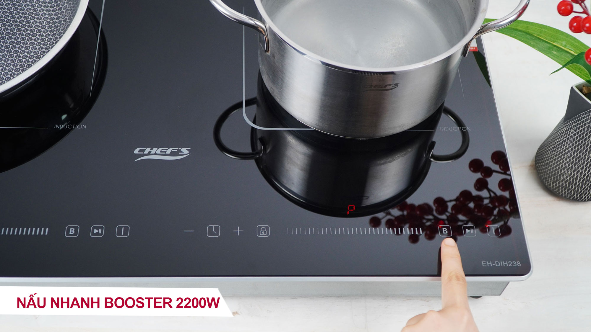 Booster 2200W: Tính năng Booster Max với công suất cực khủng lên đến 2200W giúp bạn nấu nướng cực nhanh chỉ với một thao tác chạm.
