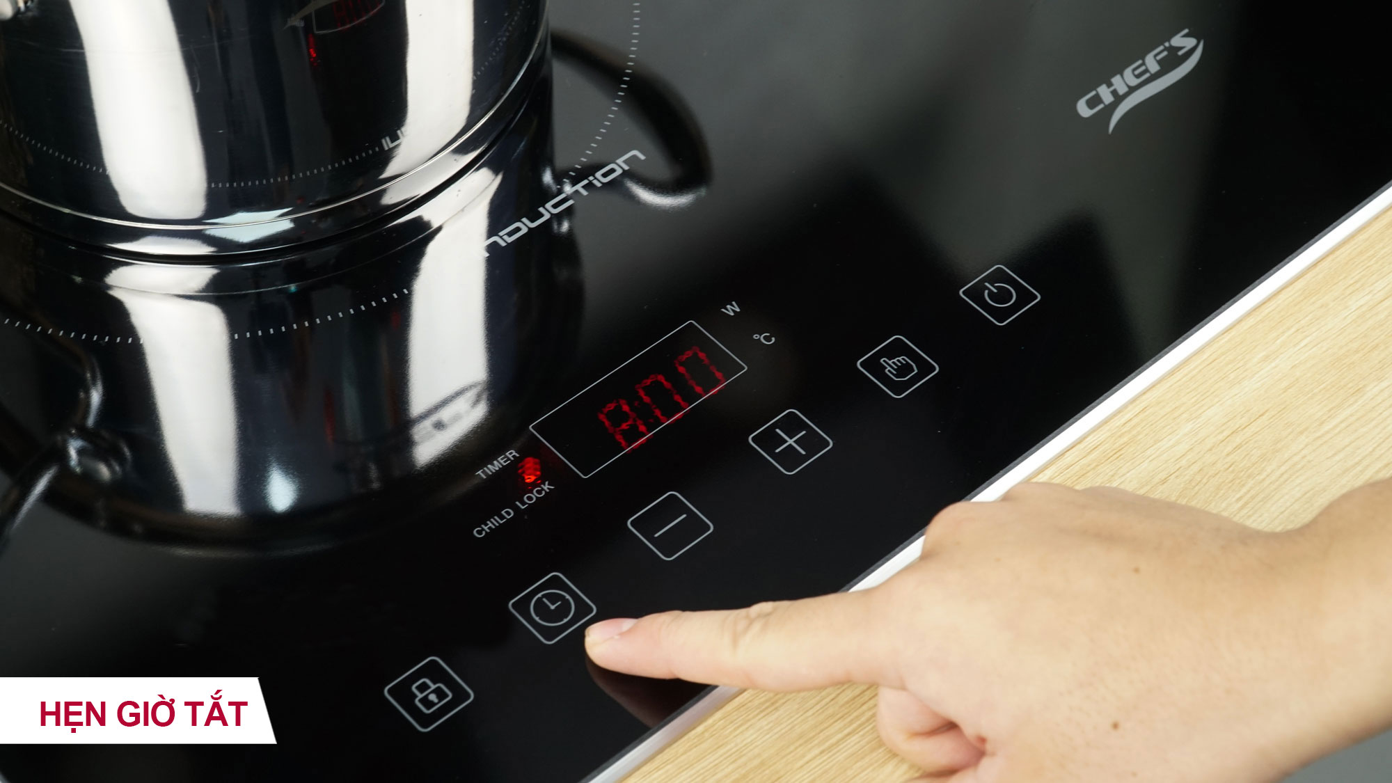 Cảnh báo nhiệt dư: Sau khi sử dụng, nếu vùng nấu mặt bếp còn nóng, màn hình LED sẽ hiển thị chữ H để cảnh báo để người dùng không chạm tay vào mặt bếp gây bỏng.