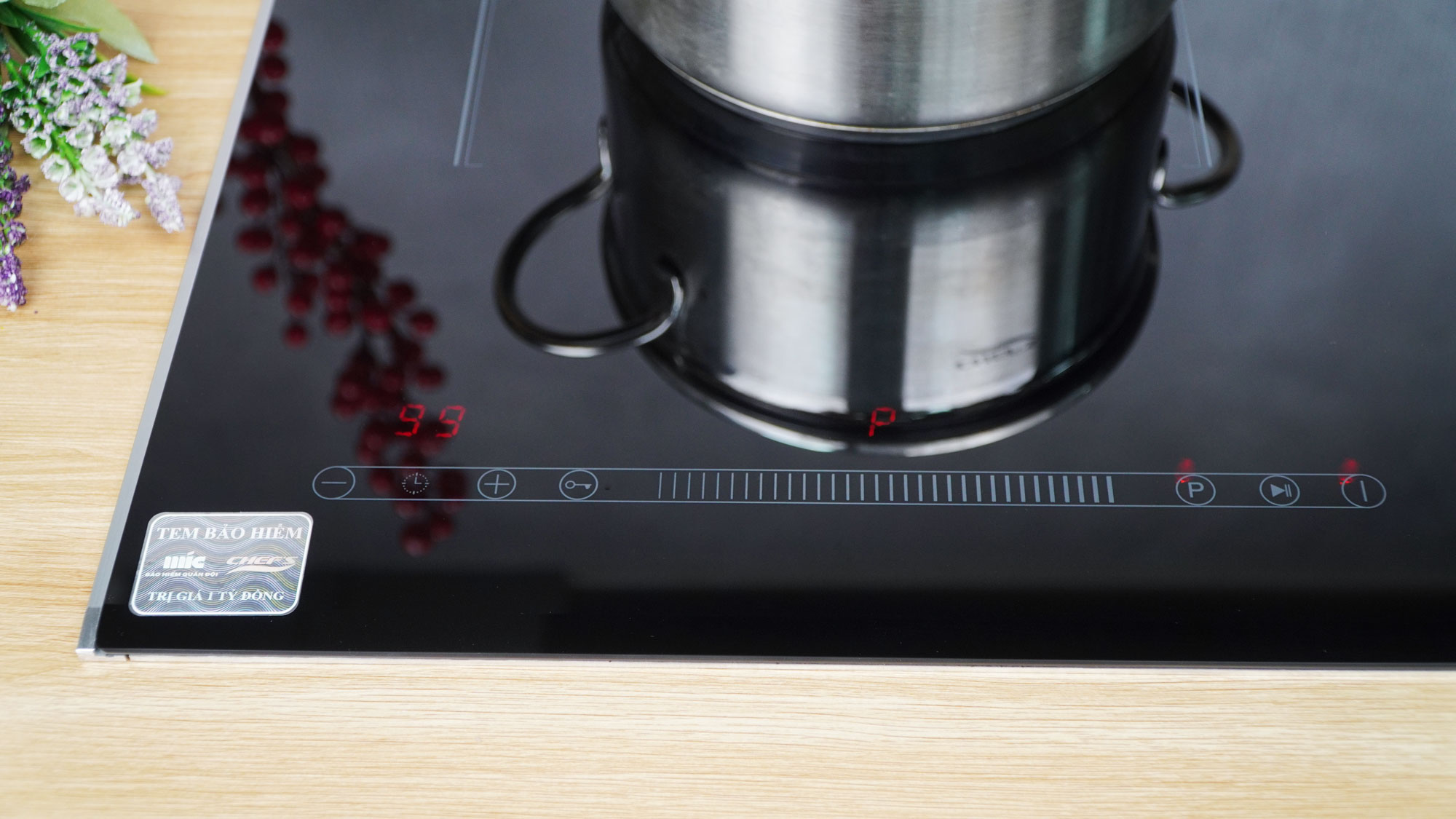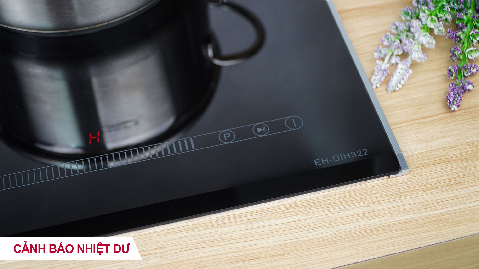 Cảnh báo nhiệt dư: Sau khi sử dụng, nếu vùng nấu mặt bếp còn nóng, màn hình sẽ hiển thị chữ H để cảnh báo để người dùng không chạm tay vào mặt bếp. Khi nhiệt độ mặt bếp giảm xuống mức an toàn, đèn báo chữ H sẽ tự động tắt.