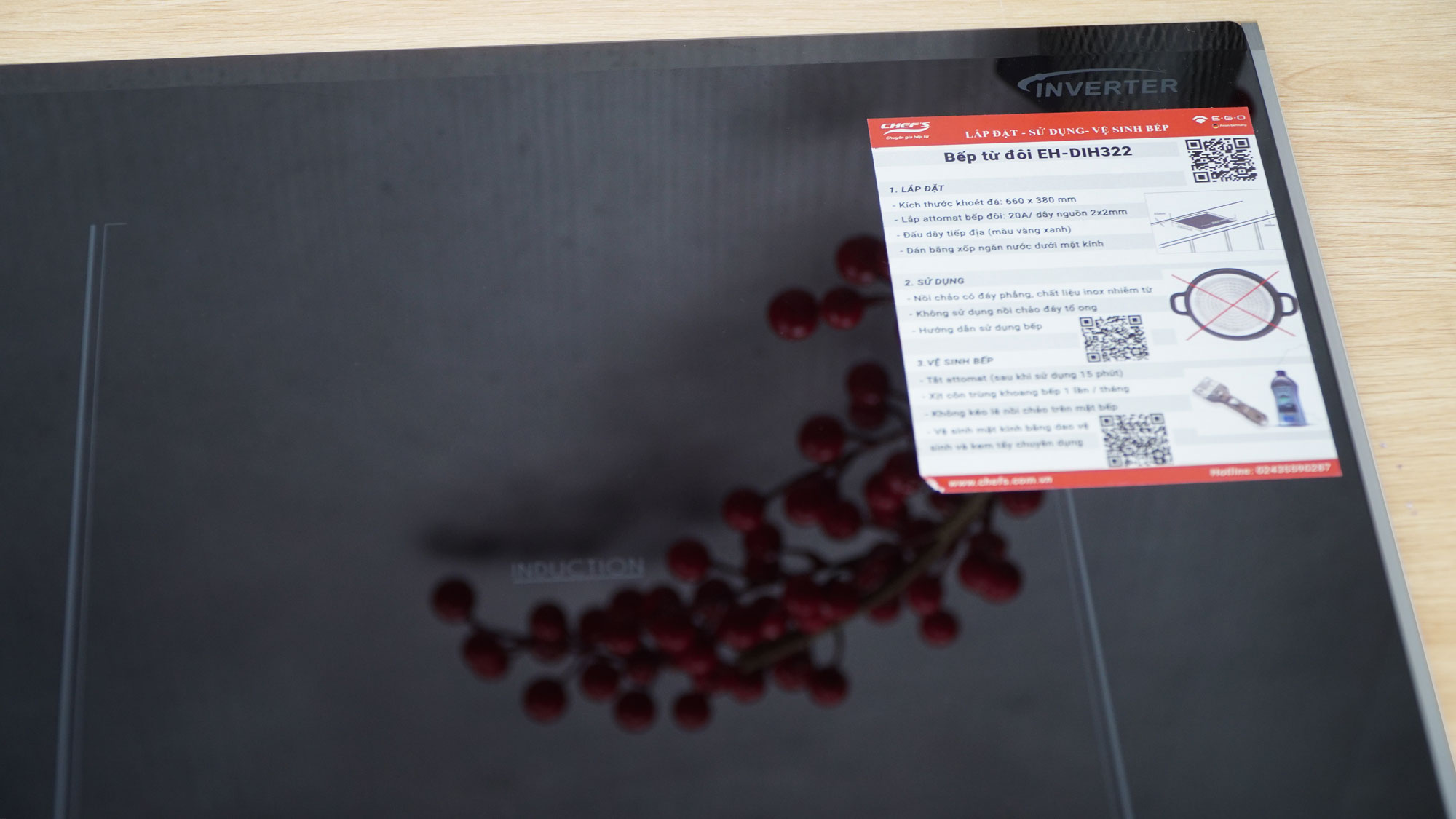 Bếp từ đôi EH-DIH322 sử dụng mặt kính Crystal Black, bo viền nhôm 2 cạnh bảo vệ mặt kính. Kính được làm từ sợi gốm Ceramic thủy tinh siêu bền, có khả năng chịu nhiệt lên đến 1000°C, chống sốc nhiệt 700°C, chịu lực tới 10kg. Kích thước 720x430 mm phù hợp với nhiều không gian bếp.
