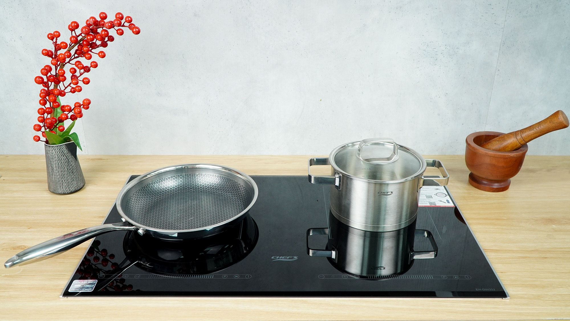 Là dòng bếp 2 vùng nấu từ, EH-DIH322 sử dụng được với các loại xoong nồi có đáy nhiễm từ (gang, inox…) Sử dụng đúng loại nồi giúp bếp từ hoạt động với hiệu suất truyền nhiệt tối ưu và ít gây hao phí nhiệt.