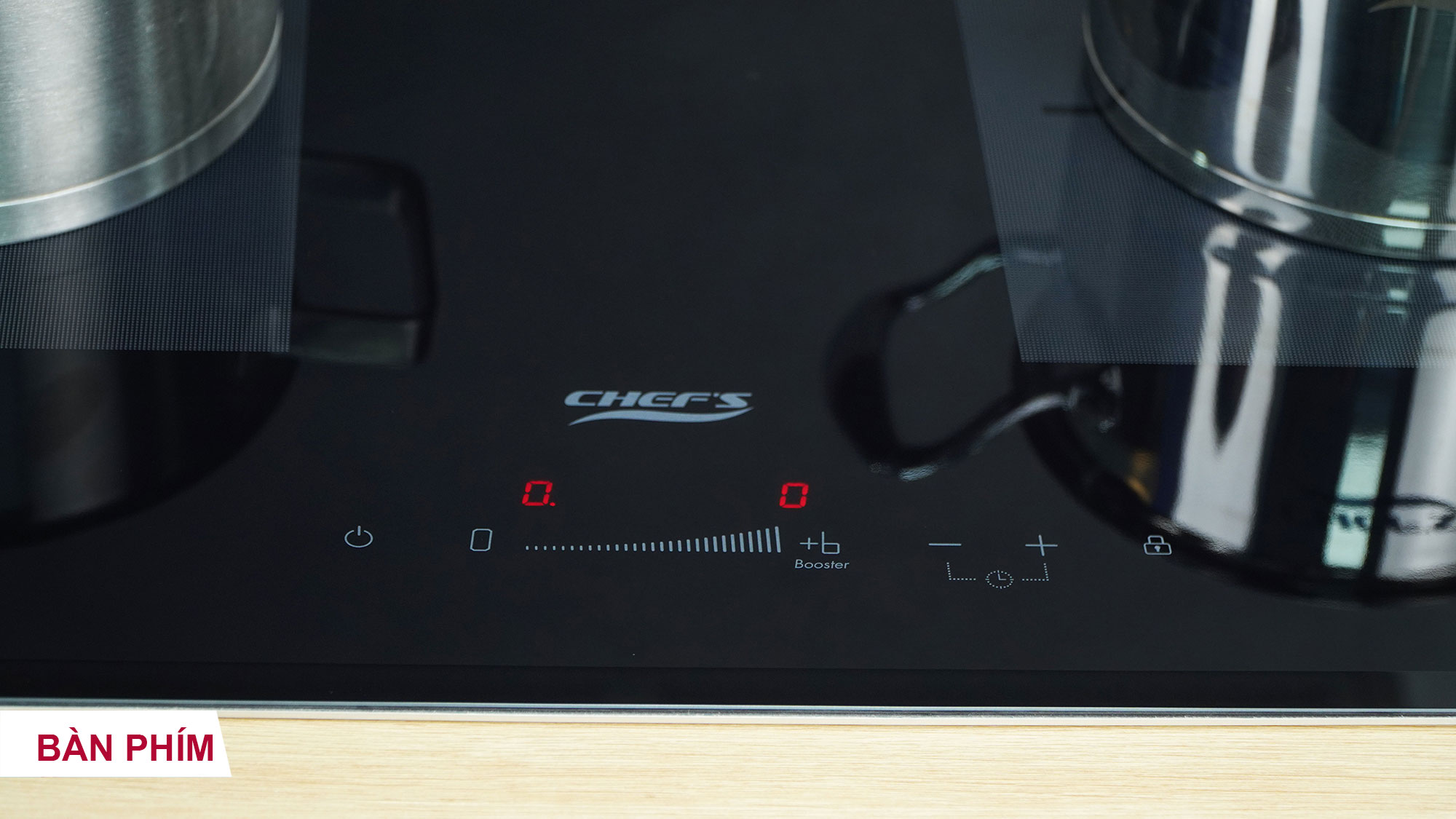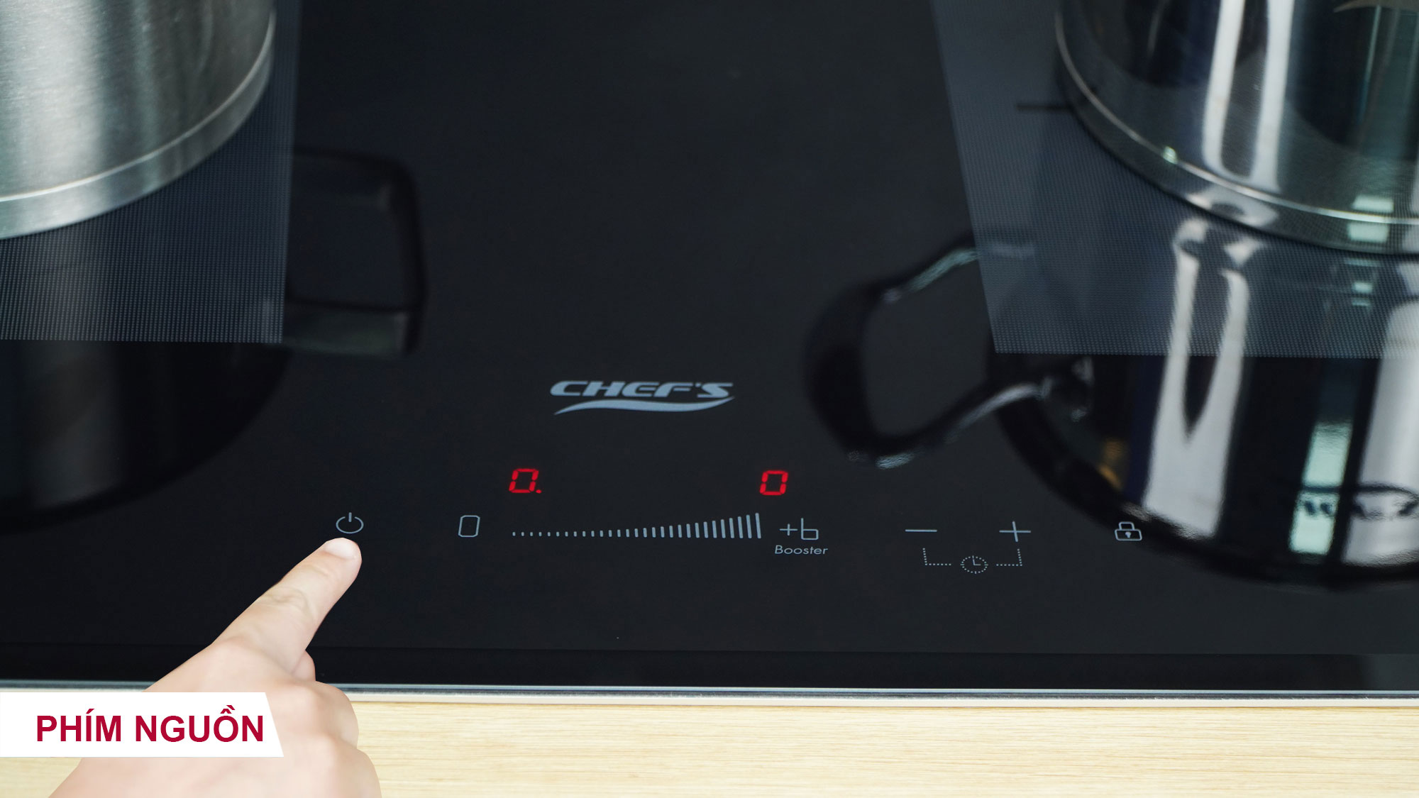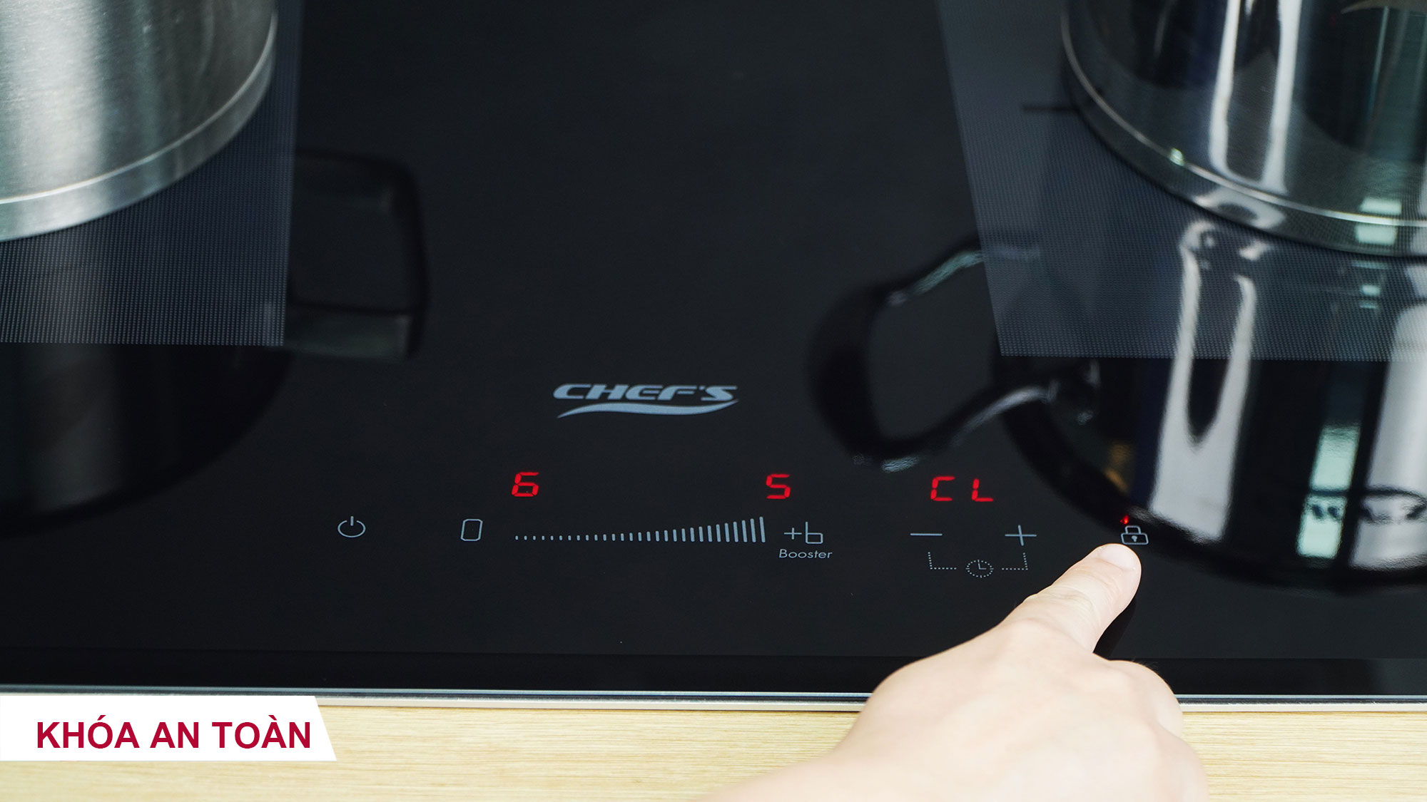 Khóa an toàn Child Lock: Nhấn vào phím khóa 1s để kích hoạt tính năng khóa. Lúc này, các phím trên bếp sẽ bị vô hiệu hóa (chỉ mở nút nguồn và Khóa), người khác, đặc biệt là trẻ em khi vô tình chạm vào bàn phím bếp cũng sẽ không làm thay đổi các chương trình nấu đã được cài đặt. Giữ tay vào phím khóa để mở lại.
