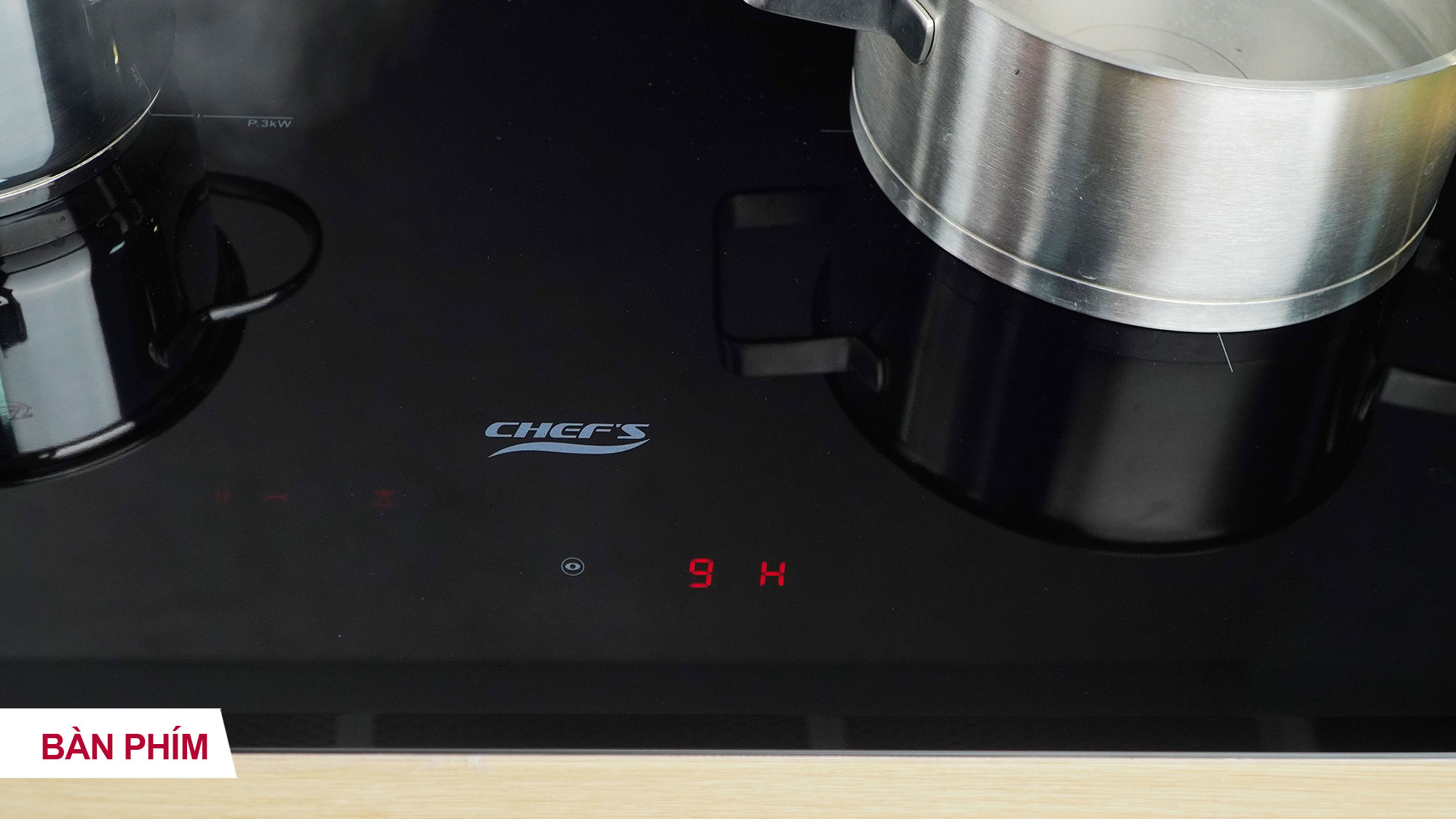 Bàn phím điều khiển dạng LED ẩn hiện đại, dùng chung cho 2 vùng nấu. Các nút điều chỉnh hiển thị rõ ràng, chi tiết, đơn giản khi sử dụng.