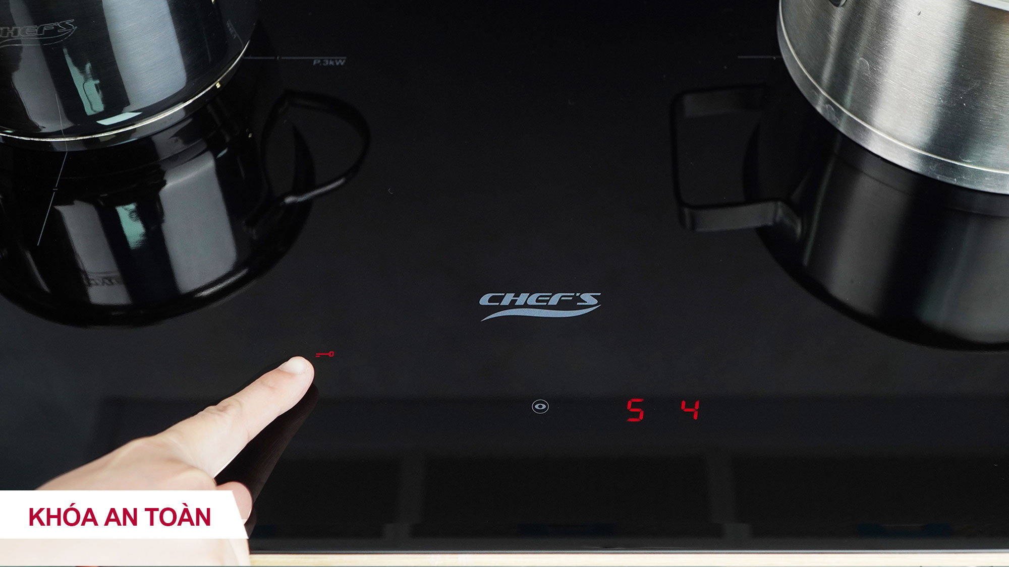 Khóa an toàn Child Lock: Nhấn vào phím khóa 1s để kích hoạt tính năng khóa. Lúc này, các phím trên bếp sẽ bị vô hiệu hóa (chỉ mở nút nguồn và Khóa). Tính năng này được ứng dụng tiện lợi đặc biệt là trong những nhà có trẻ em.