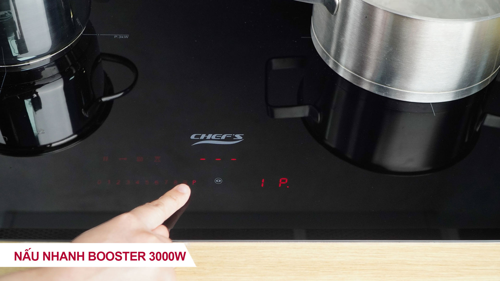 Khi kích hoạt tính năng này, bếp từ sẽ được đẩy lên nấu ở mức công suất cao nhất (mức 9) trong khoảng thời gian từ 3-5 phút, sau đó sẽ tự động chuyển về mức công suất nấu thấp được lựa chọn ban đầu. Tính năng này được sử dụng tiện lợi khi cần nấu các món ninh hầm thời gian lâu như ninh xương, làm thịt kho tàu.