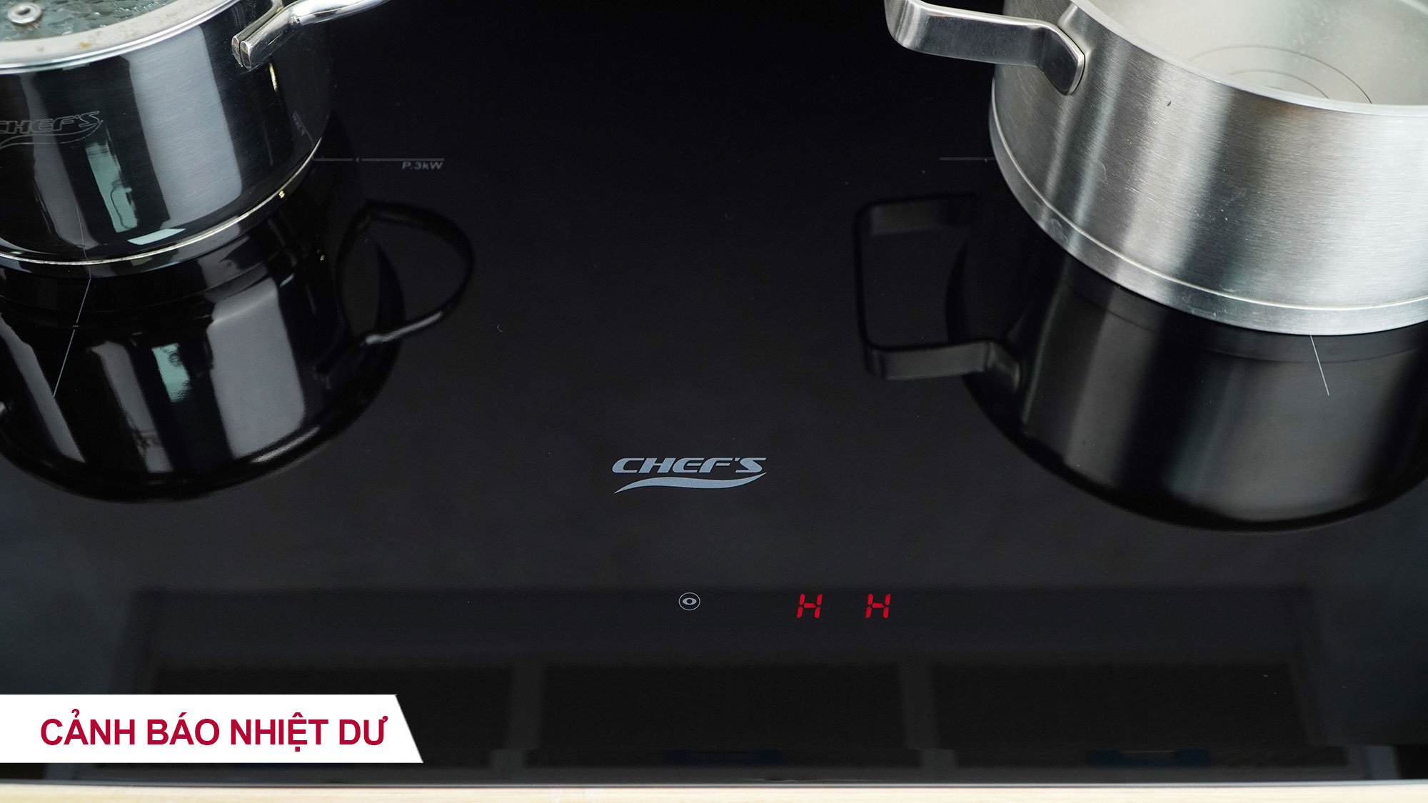 Cảnh báo nhiệt dư: Sau khi sử dụng, nếu vùng nấu mặt bếp còn nóng, màn hình LED sẽ hiển thị chữ H để cảnh báo để người dùng không chạm tay vào mặt bếp gây bỏng.