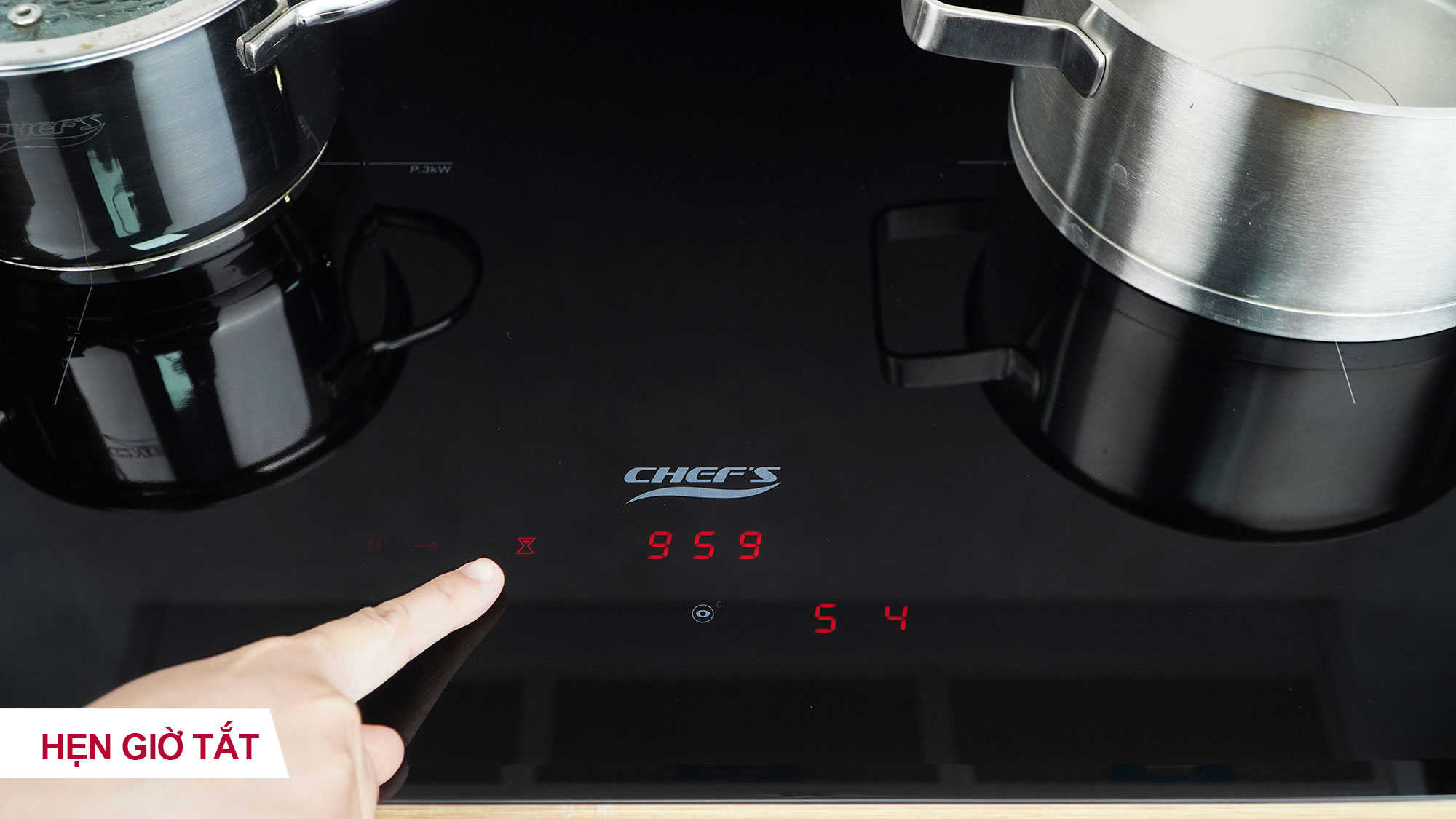 Tính năng hẹn giờ báo: Bộ đếm giờ độc lập có cơ chế hoạt động giống đồng hồ báo thức, nó không phụ thuộc vào vùng nấu có hoạt động hay không. Khi khoảng thời gian hẹn kết thúc, vùng nấu sẽ tự động tắt và cảnh báo bằng âm thanh. Để tắt âm thanh cảnh báo, bạn chạm vào bất kỳ một phím nào trên bàn phím.