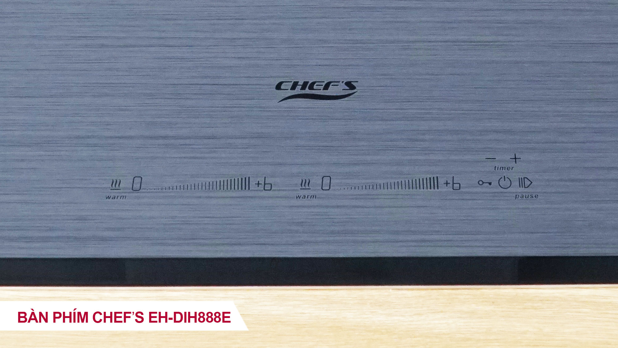 Bếp từ Inverter Chef's EH-DIH888E có 2 vùng nấu được thể hiện bằng hình dấu cộng cách điệu. Bảng điều khiển có các phím điều khiển được biểu thị bằng những kí hiệu đơn giản, dễ sử dụng.
