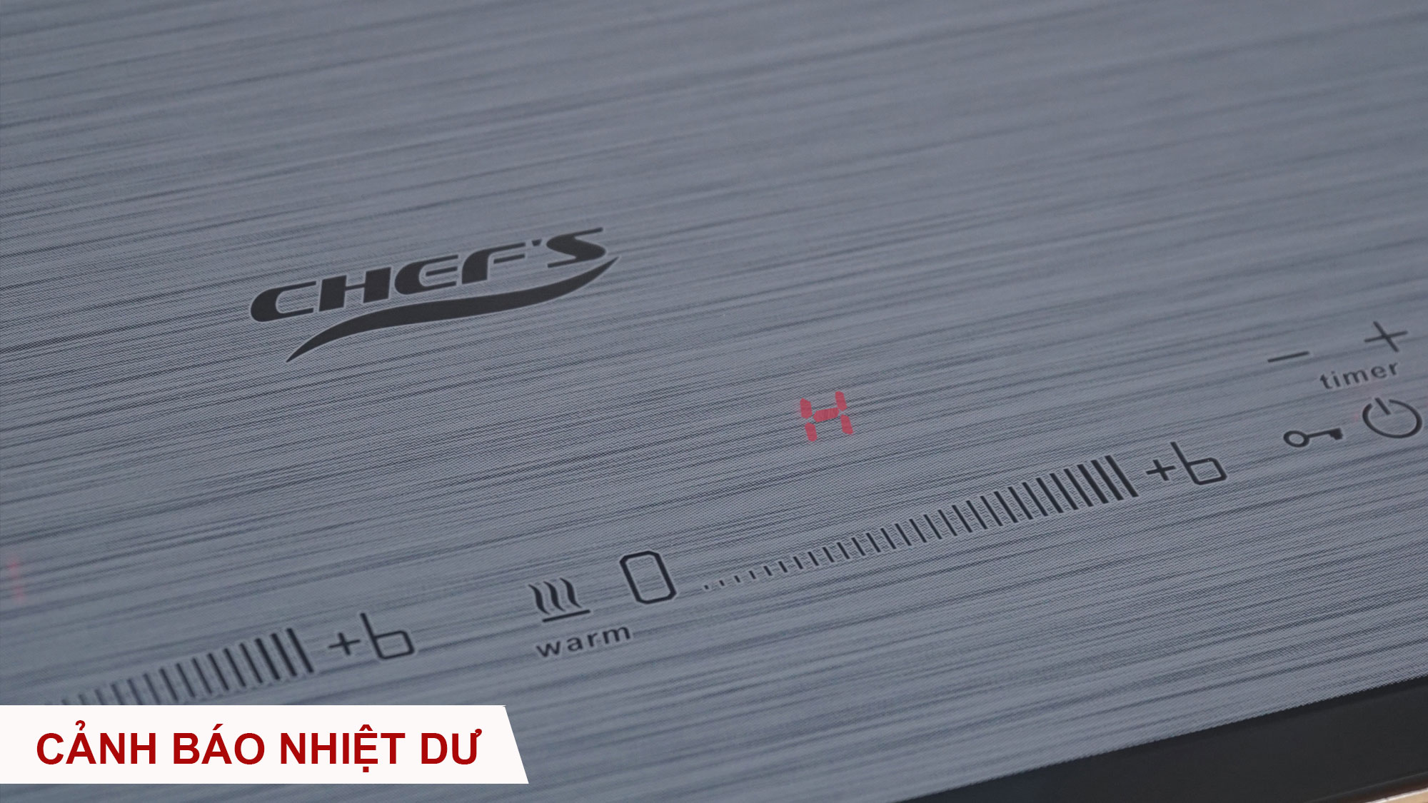 Cảnh báo nhiệt dư: Sau khi sử dụng, nếu vùng nấu mặt bếp còn nóng, màn hình LED sẽ hiển thị chữ H để cảnh báo để người dùng không chạm tay vào mặt bếp gây bỏng.