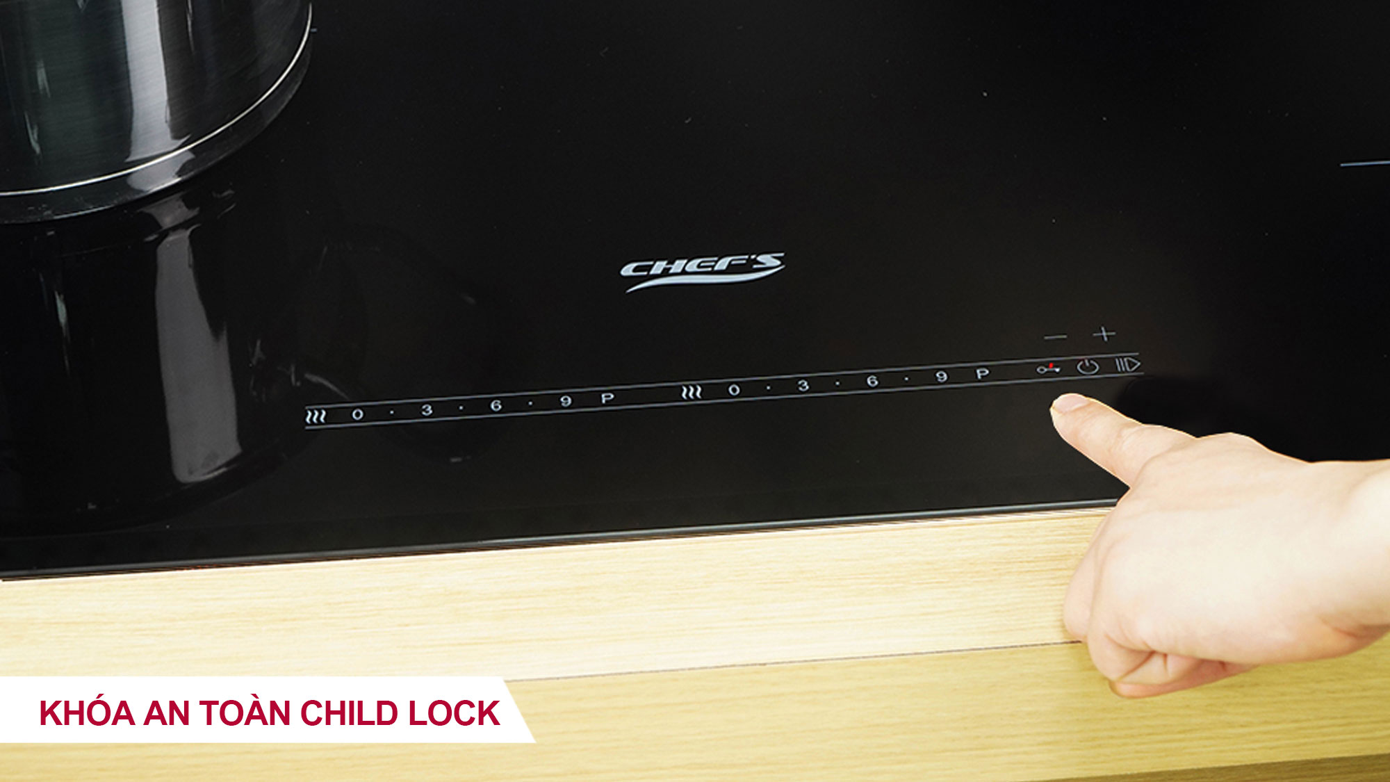 Khóa an toàn Child Lock: Nhấn vào phím khóa 1s để kích hoạt tính năng khóa. Lúc này, các phím trên bếp sẽ bị vô hiệu hóa (chỉ mở nút nguồn và Khóa). Tính năng này được ứng dụng tiện lợi đặc biệt là trong những nhà có trẻ em.