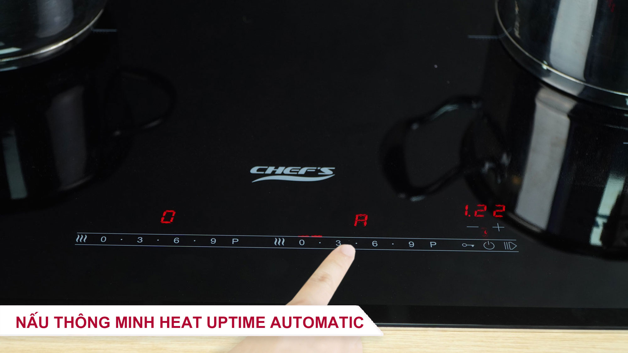 Ninh hầm tự động: Khi kích hoạt tính năng này, công suất của vùng nấu được thay đổi lên mức cao nhất ( mức 9), trong khoảng thời gian từ 3-5 phút. Sau thời gian này, bếp sẽ tự động chuyển về mức công suất ban đầu. Muốn tắt tính năng này chỉ cần thay đổi công suất bếp. Tính năng phù hợp với các món ninh hầm.