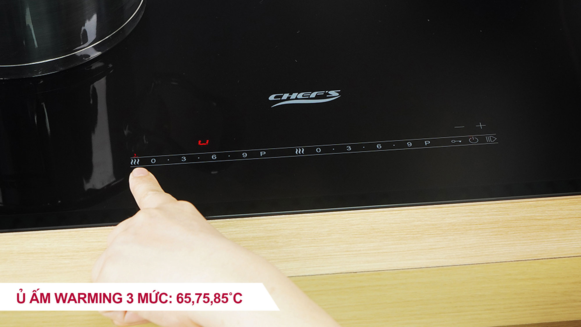 Ủ ấm/Warming: Khi vùng nấu trên bếp từ Inverter Chef’s EH-DIH889 được kích hoạt tính năng Warming, sẽ có 3 mức ủ ấm tương ứng với 3 mức nhiệt tùy chọn (65°C,75°C,85°C). Chỉ cần điều chỉnh mức nhiệt mong muốn, bếp sẽ hâm nóng và duy trì ổn định ở mức nhiệt đó. Tính năng này vô cùng tiện lợi, phù hợp để giữ ấm món ăn, đặc biệt với những gia đình có con nhỏ có thể ứng dụng để hâm sữa, sữa sẽ đc ủ ấm mà không bị quá nóng, làm mất chất dinh dưỡng.