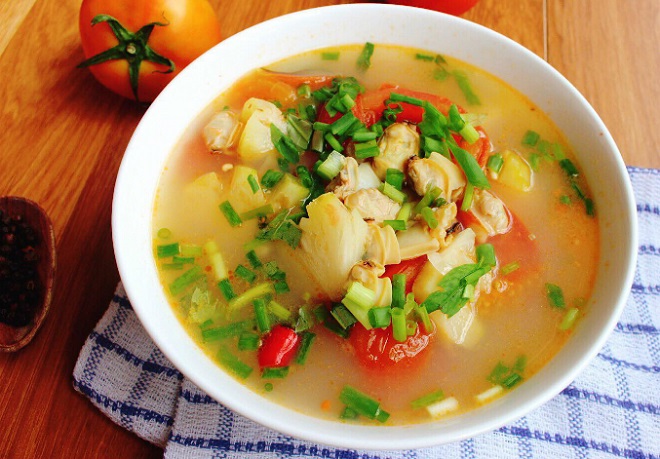 Cách thực hiện món canh ngao cà chua