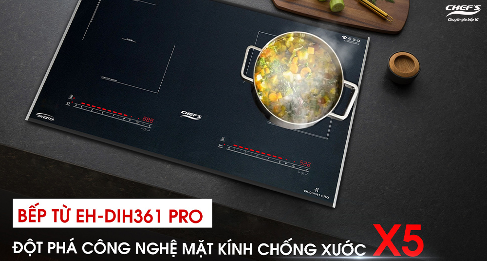 Với sự kết hợp giữa mặt kính Metalized Scratch Resist chống xước X5 lần và hàng loạt công nghệ nấu hiện đại, Chef’s EH-DIH361 PRO trở thành một trong những mẫu bếp từ đáng sở hữu nhất hiện nay. Sản phẩm không chỉ bền đẹp theo thời gian mà còn giúp người dùng tiết kiệm điện, nấu nhanh, vận hành an toàn và dễ vệ sinh – những yếu tố mà bất cứ gia đình nào cũng cần.